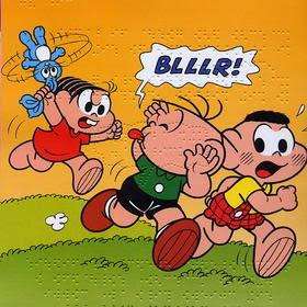 Descrição da cena: Cebolinha, Cascão e Mônica são crianças muito ativas e amigas. Porém, como todas as crianças que são amigas, às vezes se desentendem. Nesse dia, Cascão e Cebolinha resolveram perturbar a amiguinha Mônica e além de amarrar as orelhas do querido Sansão, ainda chamaram a Mônica de nomes feios. Mônica ficou muito chateada e furiosa e achou que poderia resolver esse conflito dando umas boas “coelhadas” nos amigos. É claro que esta história acabou em briga entre os três!