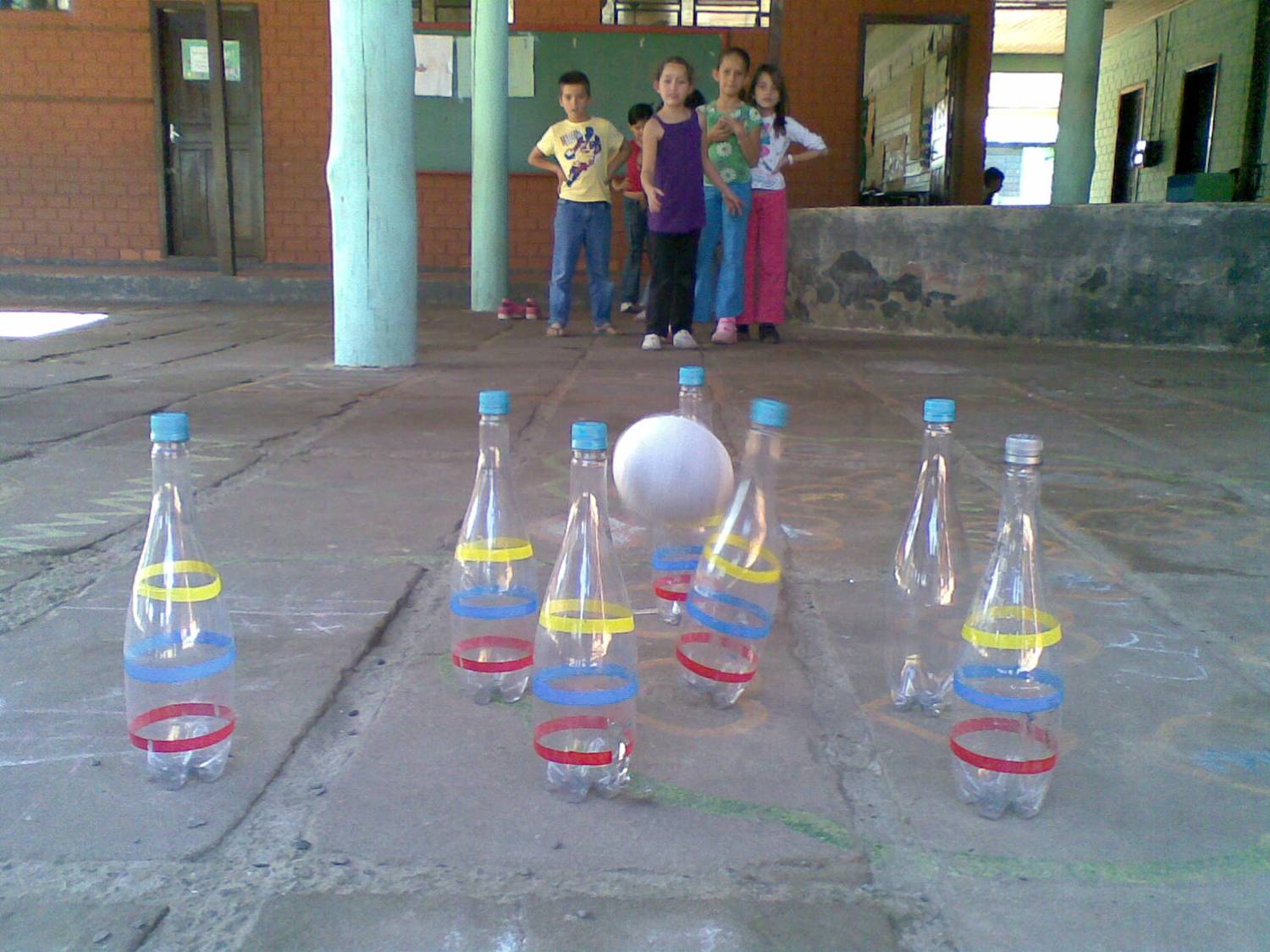 O aluno que começar com a bola, deverá arremessar a bola na garrafa de um aluno da outra equipe, podendo dar no máximo um paço para o lado. O aluno que tiver sua garrafa em risco não poderá impedir que a bola derrube sua garrafa. Se a bola arremeçada atingir sua garrafa ele sai do jogo. SE a bola não acertar sua garrafa ele tem prioridade para lançar a bola, por ter tido sua garrafa em risco.