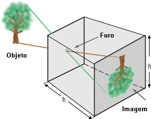 Figura 6. Imagem formada dentro da c?mara fotogr?fica se assemelha a imagem formada na retina do olho humano, ? invertida e menor que o objeto. Ilustra??o obtida em: