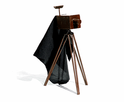Figura 5. C?mera fotogr?fica antiga, uma c?mara escura, imagem obtida em : http://3.bp.blogspot.com/_RSKukoX6ncY/S24TProYhlI/AAAAAAAADBY/ujMFFybnwBM/s400/lambelambe.gif