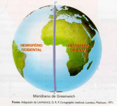 Coment?rio: O meridiano de Greenwinch ? a principal linha que divide a Terra em hemisf?rio leste ou oriental e hemisf?rio oeste ou ocidental.