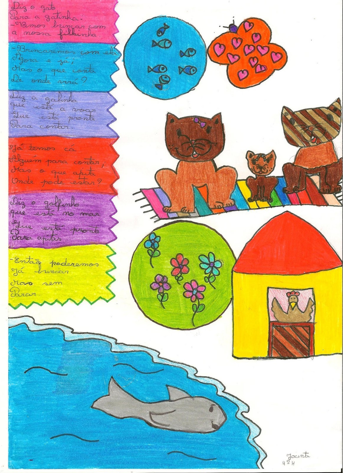 A tarefa agora é reescrever os poemas utilizando o quadro que foi preenchido na Atividade 2. Os alunos deverão escolher um animal, uma parte do corpo desse animal, os substantivos e adjetivos que rimam e reescrever os poemas. Explique aos alunos que a tarefa não é copiar os poemas, mas sim, criar outros poemas a partir desses poemas estudados. Segundo afirma Trevizan (1995, p. 101), "a recepção de textos poéticos como ponto de partida para a elaboração de outras poesias, longe de qualquer resultado depreciativo de imitação, pressupõe, ao contrário, a necessidade de o receptor ver o texto no seu movimento generativo, obrigando-o, dessa maneira, a uma reflexão crítica sobre as circunstâncias específicas do processo de criação". Portanto, leve os alunos a refletir sobre o processo de criação dos poemas estudados e, a partir desses poemas, produzir seus próprios textos poéticos.